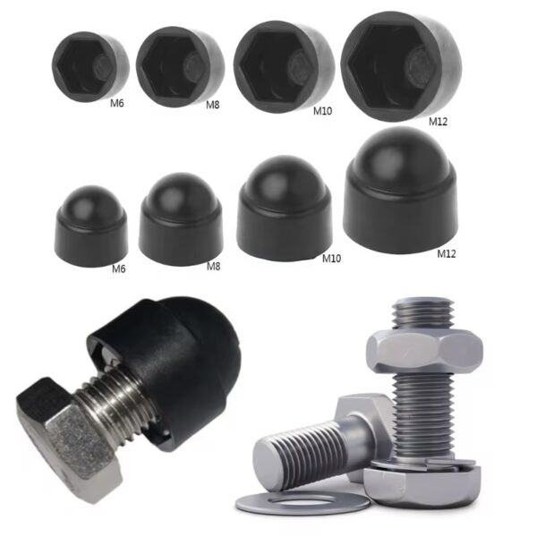 These are protective plastic bolt and nut caps designed to cover and protect exposed bolts, screws, and threaded fasteners. Made from durable, high-quality plastic, they provide both safety and aesthetic benefits.